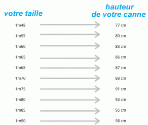 Néanmoins, voici la taille de la canne qui correspond à votre taille :